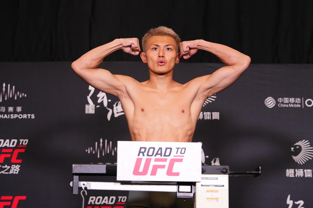 2025年8月22日(金)、中国・上海インドアスタジアムにて開催の『ROAD TO UFCシーズン4 準決勝 エピソード5&6』(UFC Fight Pass/U-NEXT配信)に向け21日(木)、前日計量が行われた(※大会速報はこちら)。 ▼ROAD TO UFC 4 フェザー級トーナメント準決勝 5分3R ※選手名から前戦リー・カイウェン(中国)15勝6敗 145.5ポンド(65.99kg)