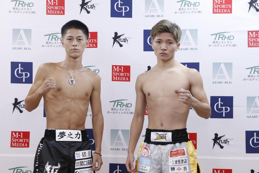今大会から開幕する「第5代Krushフライ級王座決定トーナメント」。第5試合で海凪(RAUSU GYM)と対戦する有馬大翔(K-1ジム福岡チームbeginning)が51.3kgで300グラムオーバーとなり、トーナメントは海凪が準決勝へ進出。この試合は両サイド