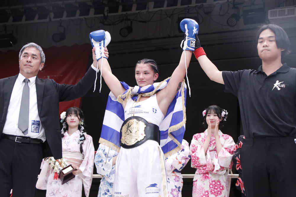 Krush.1792025年8月23日(土)東京・後楽園ホール▼メインイベント(第9試合)Krush女子フライ級タイトルマッチ 3分3R延長1R×池内紀子(POWER OF DREAM/王者)延長R 判定0-3 ※9-10×3〇ソフィア・ツォラキドゥ(ギリシャ/PANTHERS SPORTS ACADEMY/挑戦者)※ツォラキドゥが新王座に就く。池内は初防衛に失敗。本戦の判定は28-30、29-2