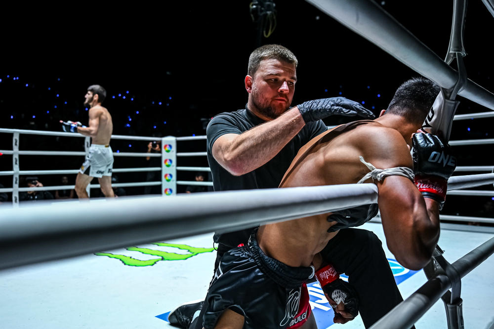 ▼第4試合 ONEアトム級(-52.2kg)ムエタイ 3分3R×ハマダ・アズマニ(モロッコ/アルティメットファイトスクール/ISKA K-1ルール世界フェザー級王者)TKO 3R 0分15秒〇吉成名高(エイワスポーツジム/ラジャダムナンスタジアム3階級制覇)