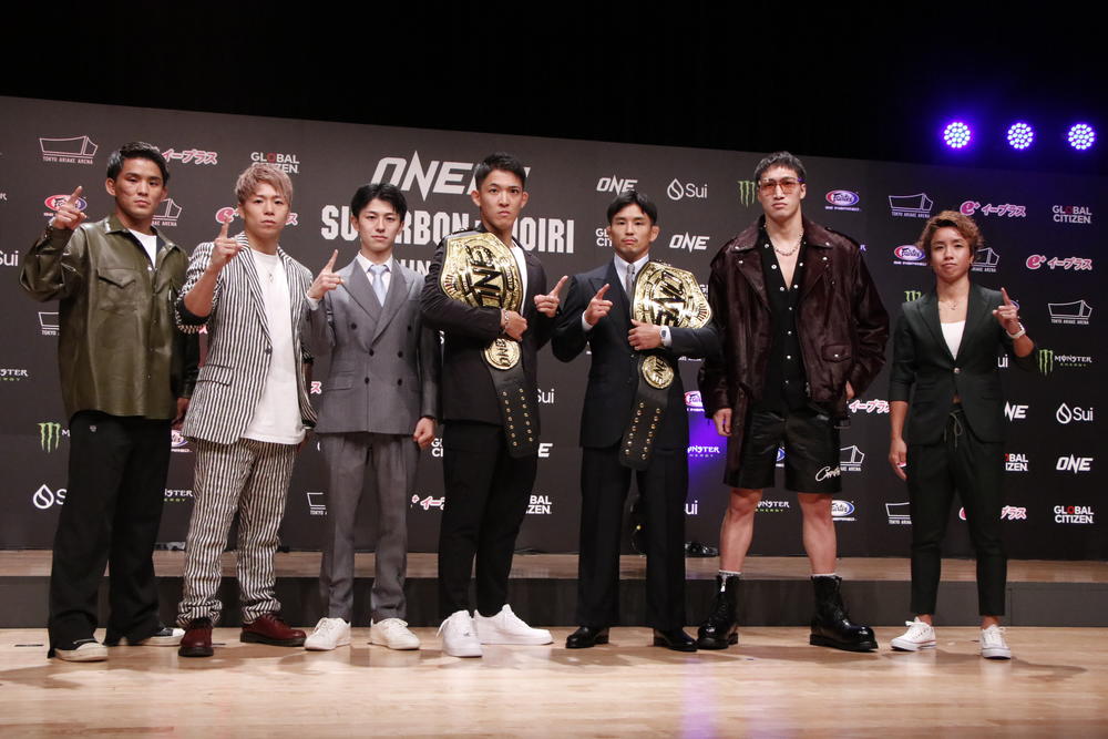 今大会にてONEフェザー級(※70.3kg)キックボクシング世界王座統一戦3分5Rで、正規王者スーパーボン(タイ)と対戦する暫定王者・野杁正明(team VASILEUS)は会見には出席しなかったが、最後のフォトセッションと囲み取材に参加した。
