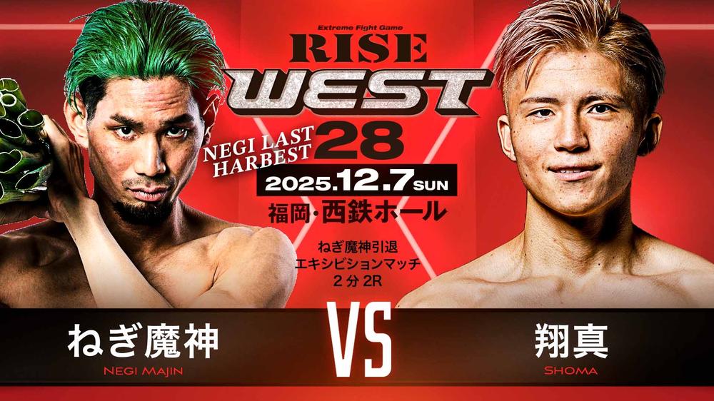 2025年12月7日(日)福岡・西鉄ホール『RISE WEST.28』にて、RISEミドル級12位のねぎ魔神(ネイバーズキックボクシングジム)が引退エキシビションマッチを行うことが発表された。  ねぎ魔神はネギを持っての入場と、語尾に必ず「ねぎねぎ」のフレーズを付けることで話題となり、RISE WESTを飛び越えてRISE本戦でも活躍。2021年9月にはぴあアリーナMMでのビッグマッチで“ブラッ