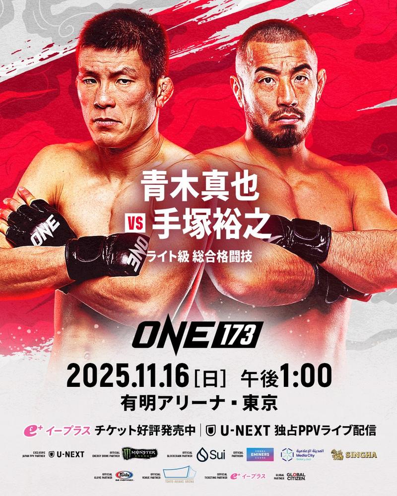 2025年11月16日(日)東京・有明アリーナで開催される『ONE 173』(U-NEXT配信)にて、青木真也と手塚裕之によるONEライト級の日本人対決が決定した。