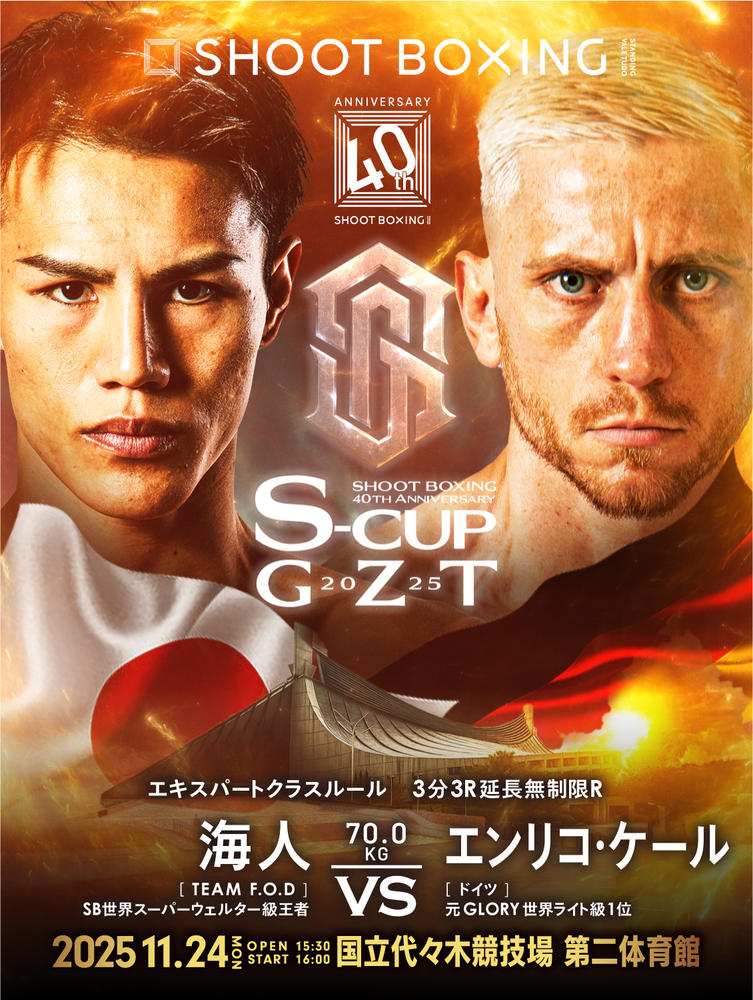 2025年11月24日(月・祝)東京・国立代々木競技場第二体育館『~SHOOT BOXING 40th Anniversary~S-cup×GZT 2025』の対戦カードが発表された。