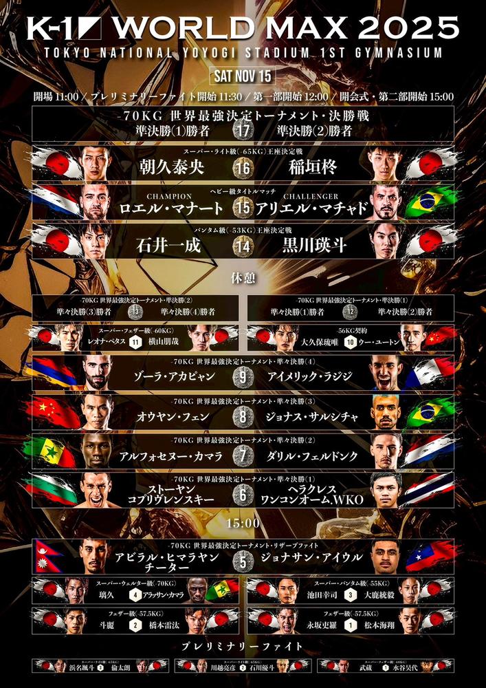 2025年11月15日(土)東京・国立代々木競技場第一体育館『K-1 WORLD MAX 2025~-70kg世界最強決定トーナメント・決勝ラウンド~』の全対戦カード&試合順が決定した。