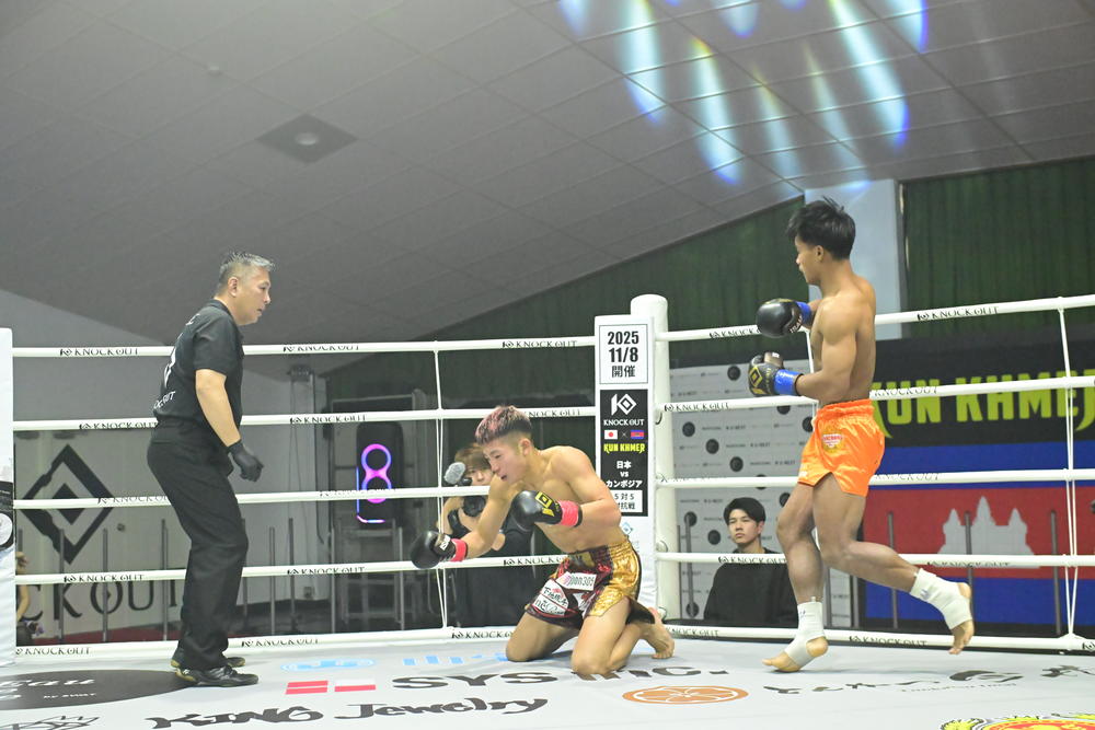 KNOCK OUT×KUN KHMMER 20252025年11月8日(土)福島・KNOCK OUT常葉アリーナ※KNOCK OUT公式YouTubeチャンネルにて配信 ▼大将戦 KNOCK OUT-REDスーパーバンタム級3分3R延長1R〇森岡悠樹(北流会君津ジム)判定2-0 ※28-27×2、28-28×サン・ラデット(カンボジア/クンクメール)  クンクメールチームの2勝1敗1無効試合で迎え