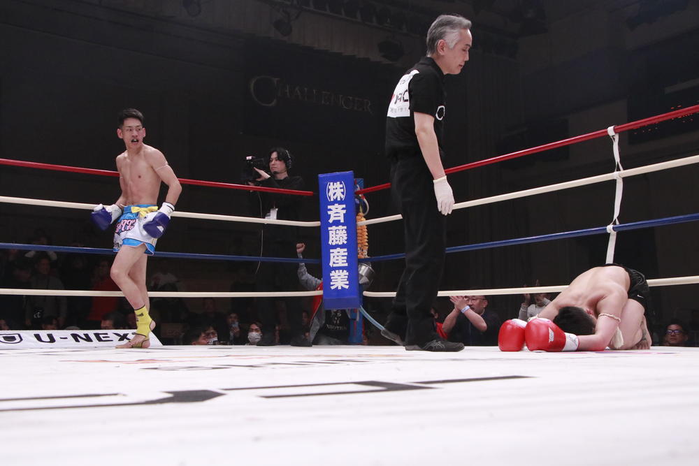 ▼第9試合 IBFムエタイ日本統一スーパーライト級王座決定戦 3分5R〇吉田凜汰朗(VERTEX/NJKFスーパーライト級王者)=63.4kg判定2-1 ※48-47、47-48、49-46×切詰大貴(武勇会/INNOVATIONスーパーライト級王者)=63.3kg