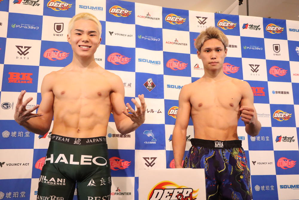 【DEEP】雅が交通事故で平松戦が中止に。フェザー級王座戦・青井人vs.水野新太、高橋遼伍vs.相本宗輝、武田光司vs.奥山貴大、バンタム級 石司晃一vs.河村泰博、水野竜也「明日が最後の試合に」=『DEEP129』前日計量