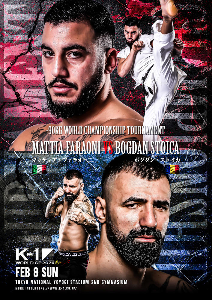 2026年2月8日(日) 東京・国立代々木競技場第二体育館『K-1 WORLD GP 2026~-90kg世界最強決定トーナメント~』で行われる「K-1 WORLD GP 2026 -90kg世界最強決定トーナメント」の組み合わせが決定した。