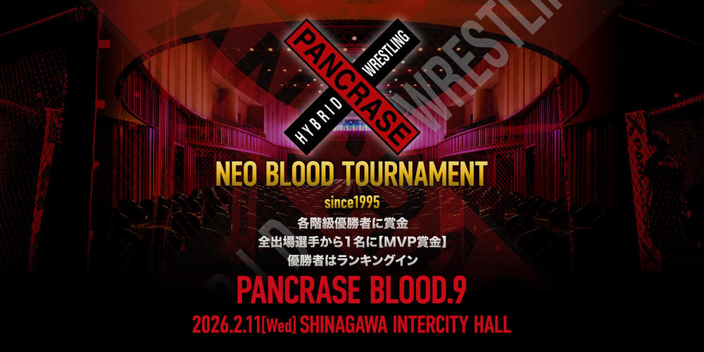 2026年2月11日(水・祝)『PANCRASE BLOOD.9』(品川インターシティホール)で開催の「第32回ネオブラッドトーナメント」の第四次参戦選手が下記の通り追加された。現時点でストロー級で12選手、フライ級で18選手、バンタム級で14選手がエントリー。昨年を上回る過去最大級のネオブラッドトーナメントとなっている。