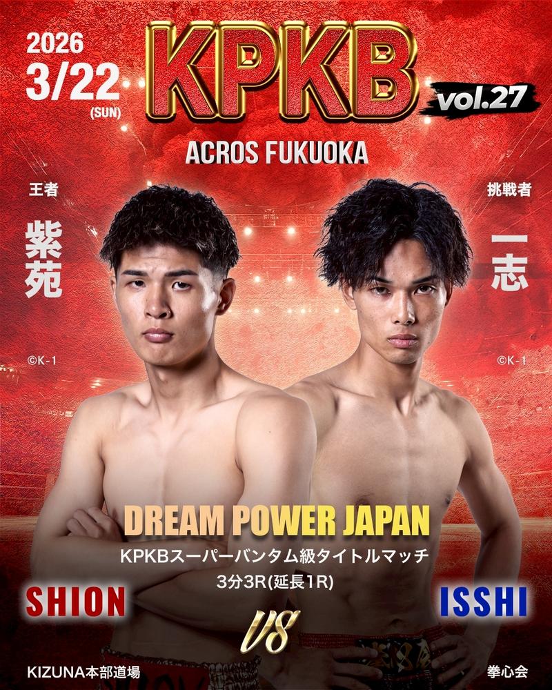 2026年3月22日(日)福岡・アクロス福岡イベントホールにて、KPKB(九州プロキックボクシング)2026年最初の大会『KPKB vol.27』が開催される。