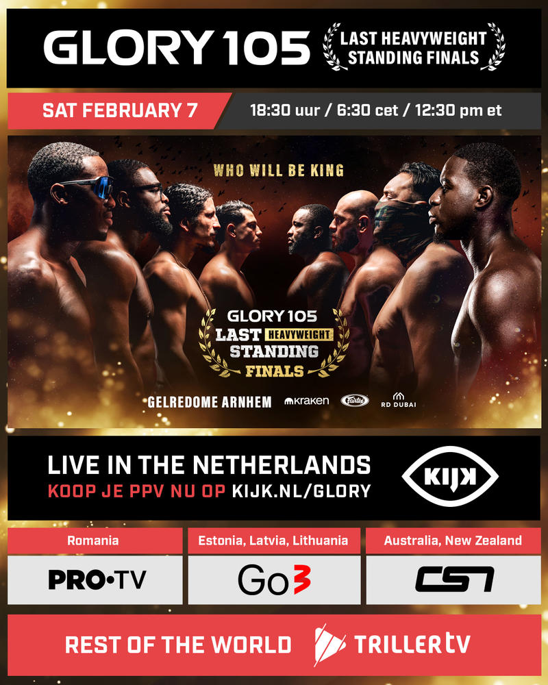 『GLORY』の2026年が2月7日(土・現地時間)にオランダ・アーネムのゲルレドームで幕を開ける。  当初の対戦カードから変更があった。2025年4月に始まり、約50名のヘビー級選手が競い合ったヘビー級トーナメント「Last Heavyweight Standing」がいよいよファイナルを迎えるが、ワイルドカード決定戦で最後に出場枠を手にした元K-1 WORLD GPヘビー級王者アントニオ・プラ