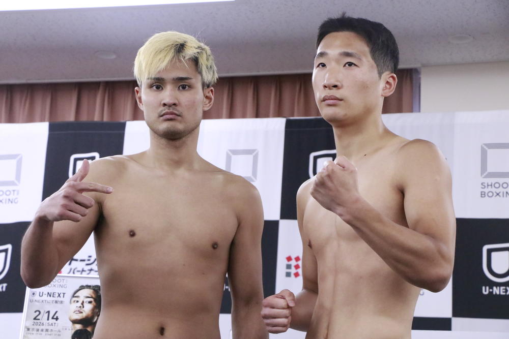 2026年2月14日(土)東京・後楽園ホール『SHOOT BOXING 2026 act.1』(U-NEXT配信)の前日計量&記者会見が、13日(金)都内にて17:00より行われた。計量は全選手が一発でパス。  会見には、第7試合からメインイベントの第9試合まで連続で登場する笠原三兄弟(弘希・友希・直希)が揃って出席。  セミファイナル(第8試合)の65.0kg契約3分3R延長無制限Rで対戦する
