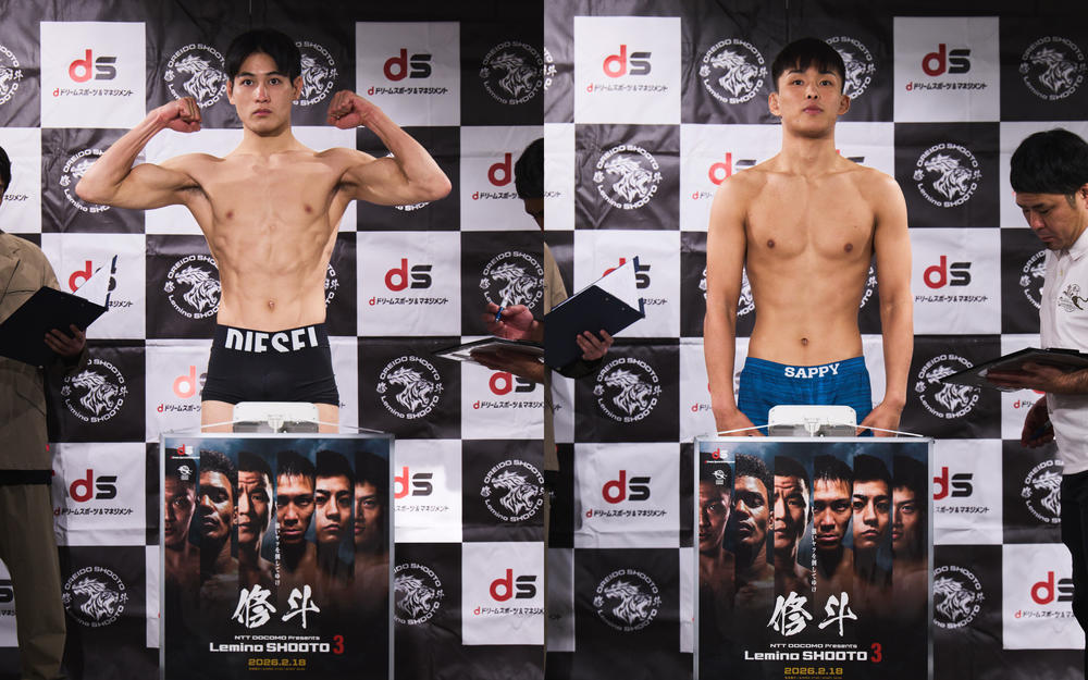2026年2月18日(水)東京・後楽園ホールで開催される『Lemino修斗.3』(Lemino配信)の前日計量が17日、都内にて行われ、全選手が計量をパスした。注目のバンタム級サバイバートーナメント1回戦3試合などが行われる同大会の当日券は、17日午後4時半から同所にて販売予定。
