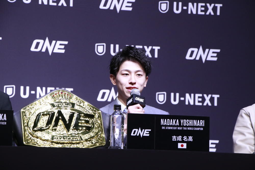 会見には、ONEアトム級(-52.2kg)ムエタイ世界王者・吉成名高(エイワスポーツジム)が出席。『ONE SAMURAI』のスタートに