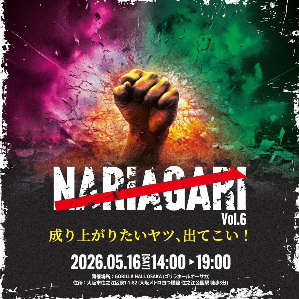 2026年5月16日(土)大阪・GORILLA HALL OSAKAにて開催される、皇治がプロデュースするアマチュア格闘技大会『NARIAGARI vol.6』にて「トライアスロンルール」が初めて行われることが決定した。