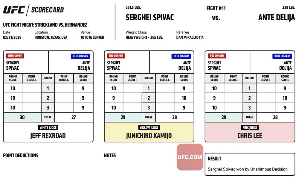 2026年2月21日(日本時間22日)、米国テキサス州ヒューストンのトヨタセンターにて『UFC Fight Night: Strickland vs. Hernandez』(U-NEXT/UFC Fight Pass配信)が開催された。