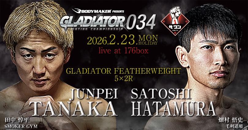 2026年2月23日(月・祝)大阪・176BOXにてGLADIATOR開幕戦『GLADIATOR034』(THE 1 TV配信)が開催された。前日計量は全選手がパス。日韓対抗戦3試合をメインカードに、全19試合が行われた(※試合詳報はこちら)。 『GLADIATOR034』結果速報 2026年2月23日(祝・月)開場12:00 開始13:00予定※オープニングファイト12:30開始予定 【日