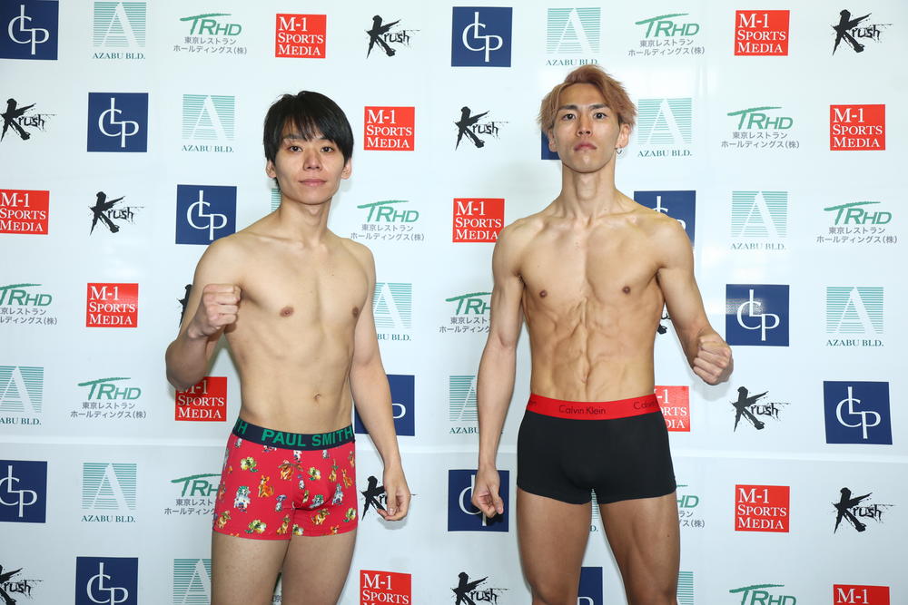 【Krush】全12試合24選手が全員パス、メインで対戦の石田龍大とク・テウォンは顔を近づけてのバチバチフェイスオフ=前日計量