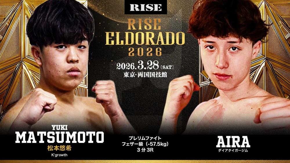 2026年3月28日(土)東京・両国国技館『RISE ELDORADO 2026』にて、RISEスーパーライト級(-65.0kg)5位でBreakingDownフェザー級(-66.0kg)王者YURA(ダイアタイガージム)の弟、AIRA(同)がプロデビュー戦を行うことが決まった。