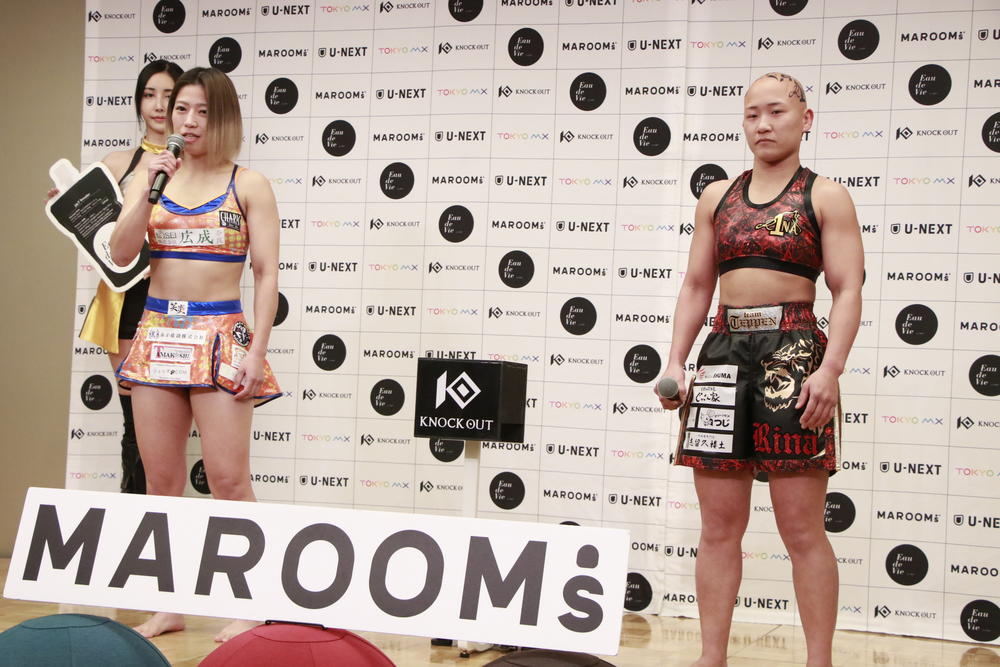 2026年3月14日(土)東京・後楽園ホール『MAROOMS presents KNOCK OUT.62』(U-NEXT配信)の前日公開計量が、13日(金)都内にて13:30より行われた。  第7試合のKNOCK OUT-UNLIMITED女子 -54.0kg契約3分3Rで対戦する、鈴木万李弥(KNOCK OUT クロスポイント吉祥寺)は53.8kg、タイソンRINA(TEAM TEPPEN)は
