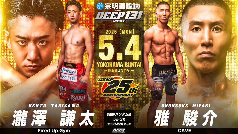 2001年8月18日の『DEEP2001 in YOKOHAMA(DEEP 2)』以来、25年ぶりのDEEP横浜BUNTAI大会となる『宗明建設Presents DEEP 131 IMPACT』(5月4日)の一部対戦カードが13日、発表された。