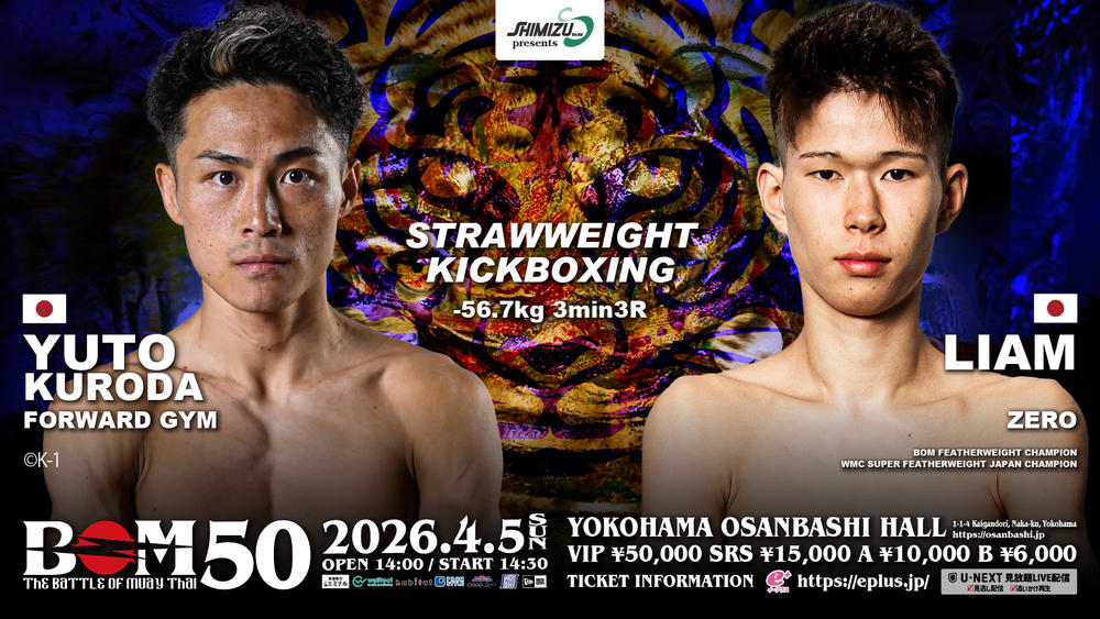 50回目の開催となる記念すべき今大会から、初採用されるキックボクシングルールで松田龍聖(大原道場)vs.吏亜夢(ZERO)の一戦が決定していたが、松田は3月6日の『ONE Friday Fights』で対戦したシンダム・カフェ