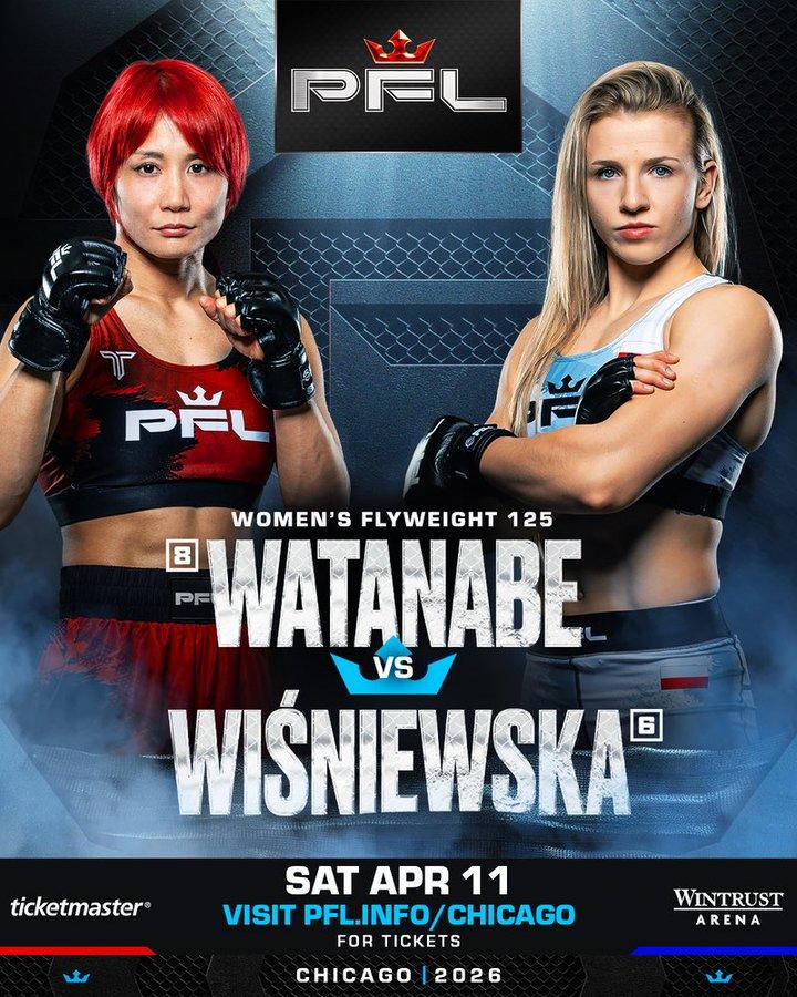 2026年4月11日(日本時間12日)、米国イリノイ州シカゴのウィントラスト・アリーナで開催される『PFL Chicago: Pettis vs. McKee』に渡辺華奈(FIGHTER'S FLOW)が出場、PFL4勝1敗のパウリナ・ヴィシエフスカ(ポーランド)と対戦することが発表された。
