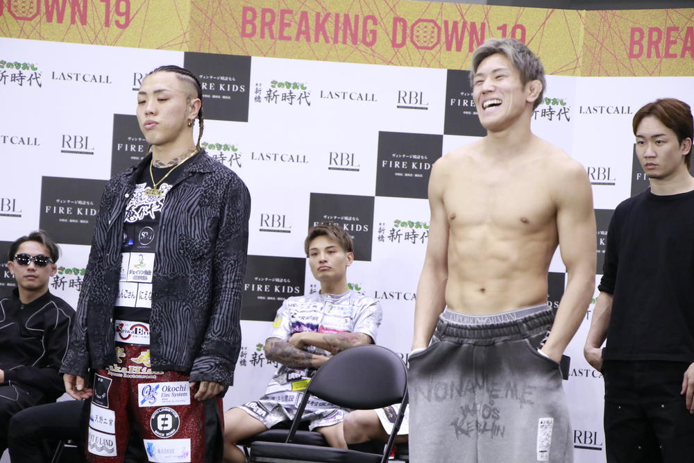 2026年3月20日(金)愛知・IGアリーナ『BreakingDown 19』の前日公開計量&記者会見が、19日(木)同会場にて行われた。  第28試合の名古屋vs.大阪ライト級ワンマッチ・MMAルールで対戦する、白川ダーク陸斗(大阪)は67.7kg、sakkkiは67.85kgでそれぞれ計量をパス。  コメントを求められたsakkkiは「明日はようやく白川陸斗なので、あのsakkkiがMMAル