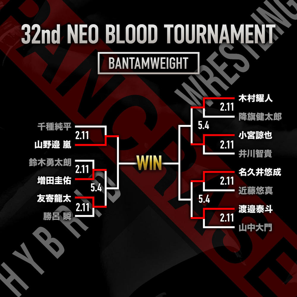 2026年5月4日(月/祝)東京・品川インターシティホールで開催される『PANCRASE BLOOD.10』の「第32回ネオブラッドトーナメント」のカードが下記の通り、発表されている。2月11日の『PANCRASE BLOOD.9』で勝ち上がった選手たちの2回戦以降が主に行われる。