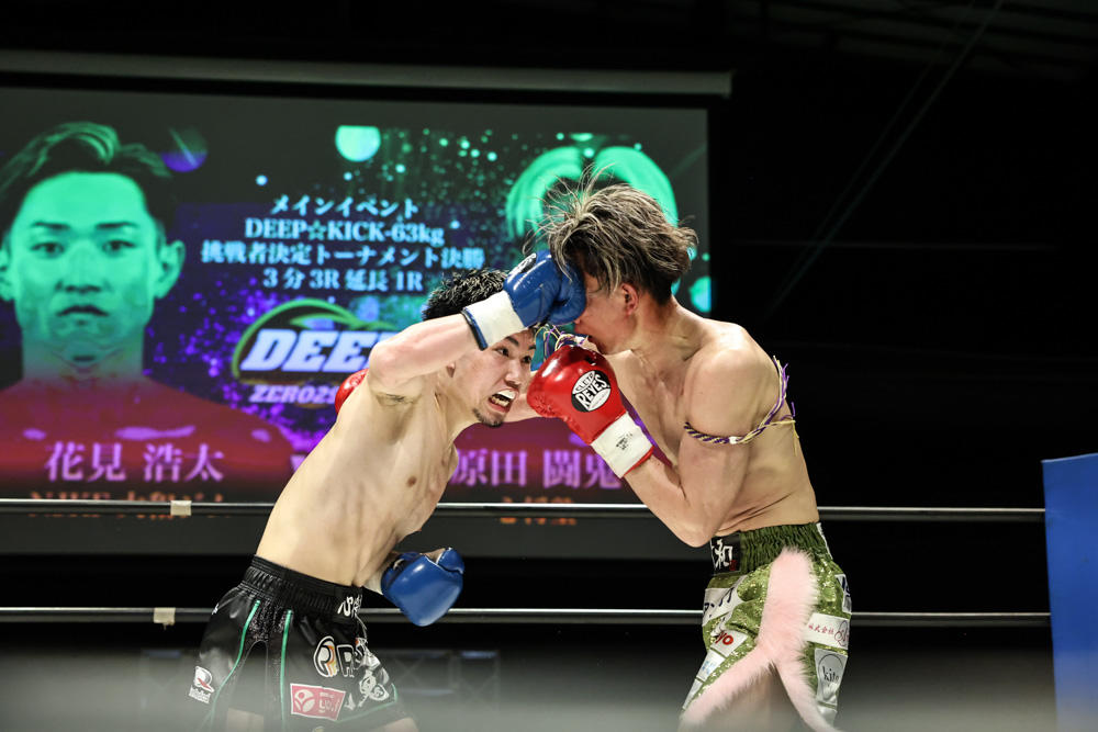 DEEP☆KICK ZERO 292026年4月5日(日)大阪・176BOX ▼メインイベント DEEP☆KICK-63kg挑戦者決定トーナメント決勝 3分3R延長1R×花見浩太(NJKF大和ジム)判定0-3 ※27-30×2、28-30◯原田闘鬼(心将塾)※原田が王座挑戦権を獲得。  鬼の目にも涙。鬼ケ島出身の原田が花見を3-0の判定で撃破。DEEP☆KICK-63㎏挑戦者決定トーナメントを制し