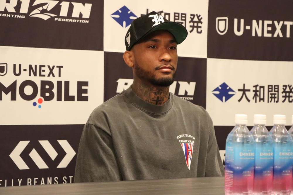 第9試合のRIZINフェザー級(66.0kg)5分3Rで、萩原京平(SMOKER GYM)と対戦する初参戦のアバイジャ・カレオ・メへウラ(米国)が出席。試合への意気込みを語った。