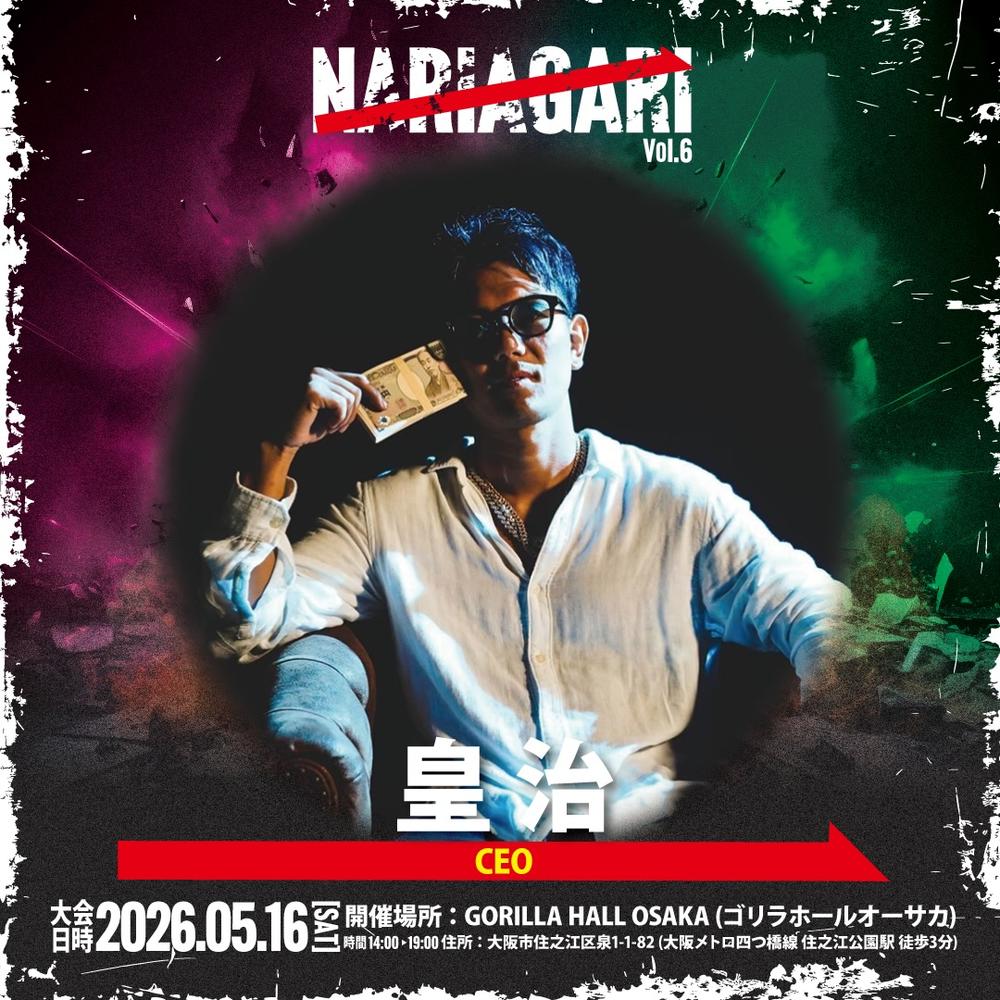 2026年5月16日(土)大阪・ゴリラホール『NARIAGARI vol.6』の対戦カードが発表された。 “世界の田中”こと皇治がCEOを務める格闘技イベント『NARIAGARI vol.6』。今大会のメインイベントは、平山迅(TEAM ONE)vs.Daryl Lokuku(=ロクク・ダリ/TRI.H Studio)に決定。  平山は皇治の盟友で、K-1グループで渡部太基、塚越仁志、牧平圭太、