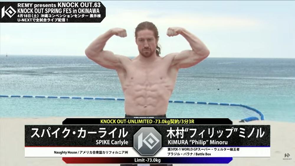セミファイナル(第15試合)のKNOCK OUT-UNLIMITED -73.0kg契約3分3Rで対戦する、スパイク・カーライル