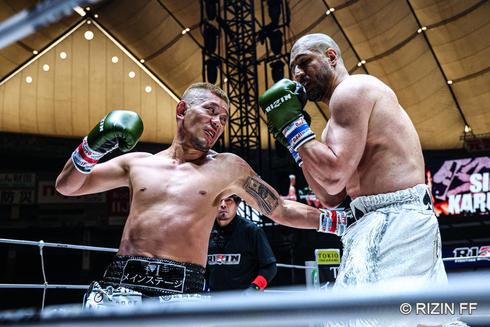 【写真】2025年5月の東京ドーム大会で、27cm、28kg差のシナ・カリミアンと対戦した皇治 皇治は、K-1 WORLD G