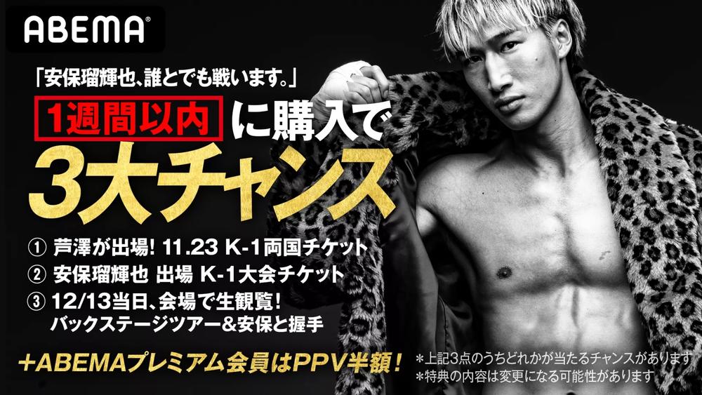 【K-1 DX】芦澤竜誠の次は安保瑠輝也「俺を嫌いなやつ・俺とガチで殴り合いたいやつ」募集