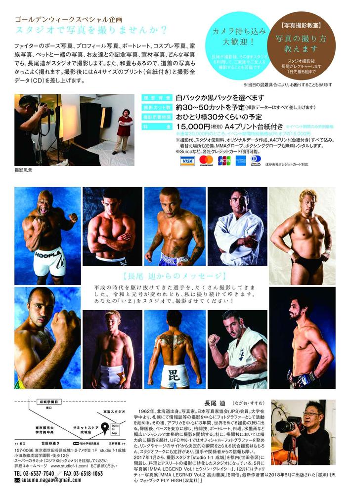【PHOTO】格闘技写真の第一人者・長尾迪氏が4月27日(土)~5月5日(日)成城で撮影会