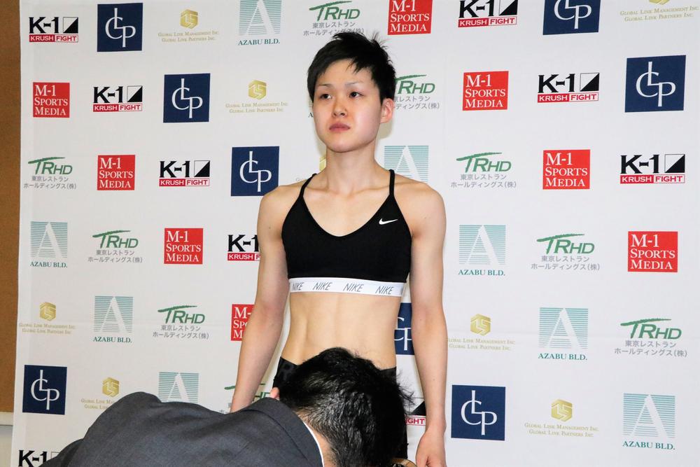 【KRUSH】菅原美優がプロ2戦目へ向けて計量クリアー、600グラムアンダーに「えっ、軽い!」