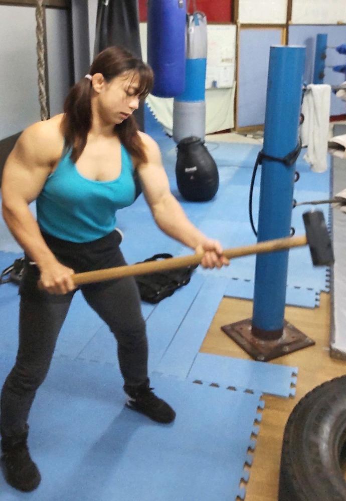 中井りんが練習相手を募集、ハンマートレーニングをする腕の太さに「この画像を見たら来ないんじゃ…」