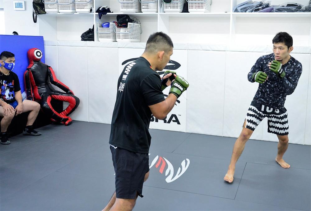 2021年10月24日(日)『Yogibo presents RIZIN.31』横浜・ぴあアリーナMM大会のメインイベントで、DEEPフェザー級王者の牛久絢太郎(K-Clann)を相手に、RIZINフェザー級王座の初防衛戦に臨む王者・斎藤裕(パラエストラ小岩)が10月14日、CAVEにて公開練習&囲み取材を行った。  公開練習では、石渡伸太郎塾長が見守るなか、同じ横浜大会で阿部大治と対戦するア
