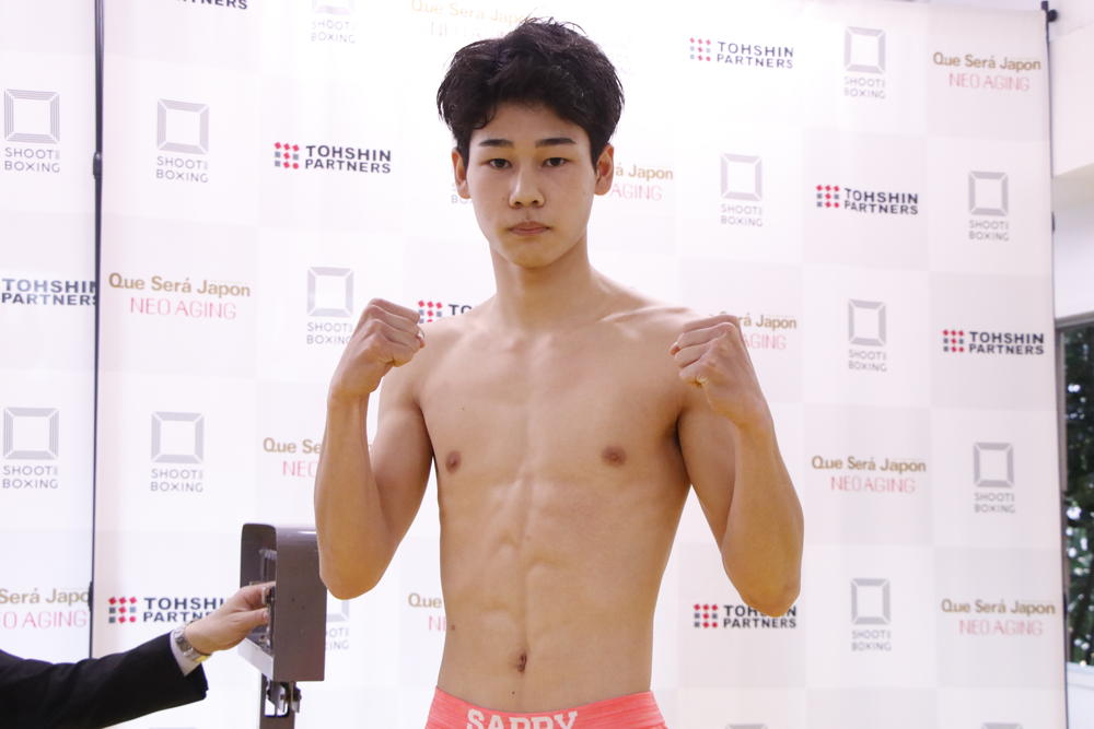 2022年4月10日(日)東京・後楽園ホール『SHOOT BOXING 2022 act.2』の前日計量&記者会見が、9日(土)都内にて17:00より行われた。  セミファイナルの第7試合で、SB日本フェザー級王座決定戦3分5R延長無制限Rを争う同級1位・魁斗(立志會館)は57.4kg、川上叶(龍生塾)は57.5kgで計量をパス。  続いてタイトルマッチ調印式と会見が行われ、バンタム級に続いての
