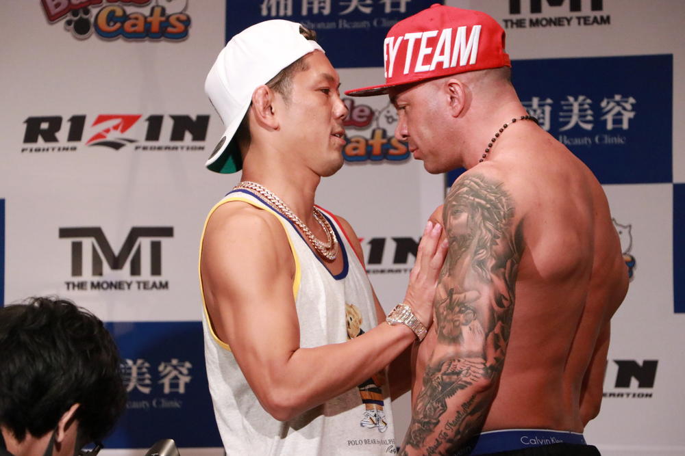 【超RIZIN】皇治とジジが一触即発! 突き飛ばした皇治にジジが怒りの突進で大混乱に。朝倉未来とメイウェザーは計量欠席