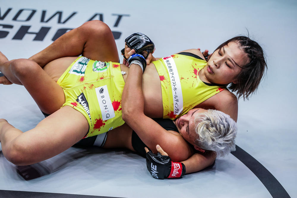 【ONE】三浦彩佳が投げて袈裟に固めるも極めきれず。ソウザの左を被弾し、右肩を負傷TKO負けで「ごめんなさい」