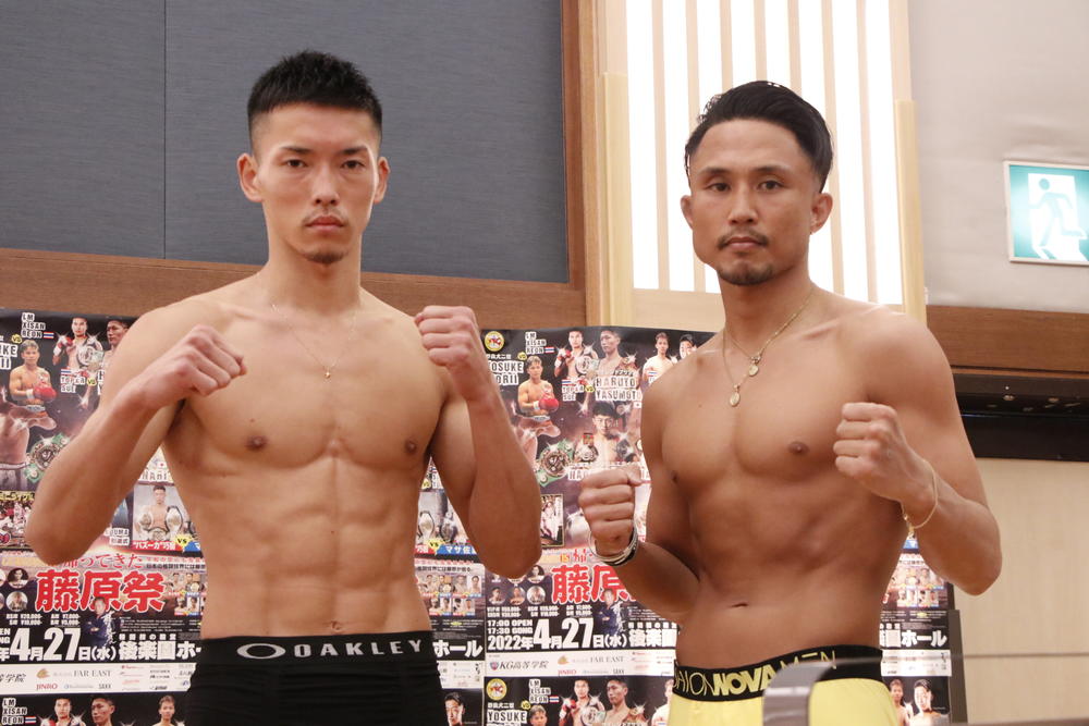 2022年4月27日(水)東京・後楽園ホール『CHAKURIKI 15 帰ってきた藤原祭』の前日計量&記者会見が、26日(火)都内にて18:00より行われた。