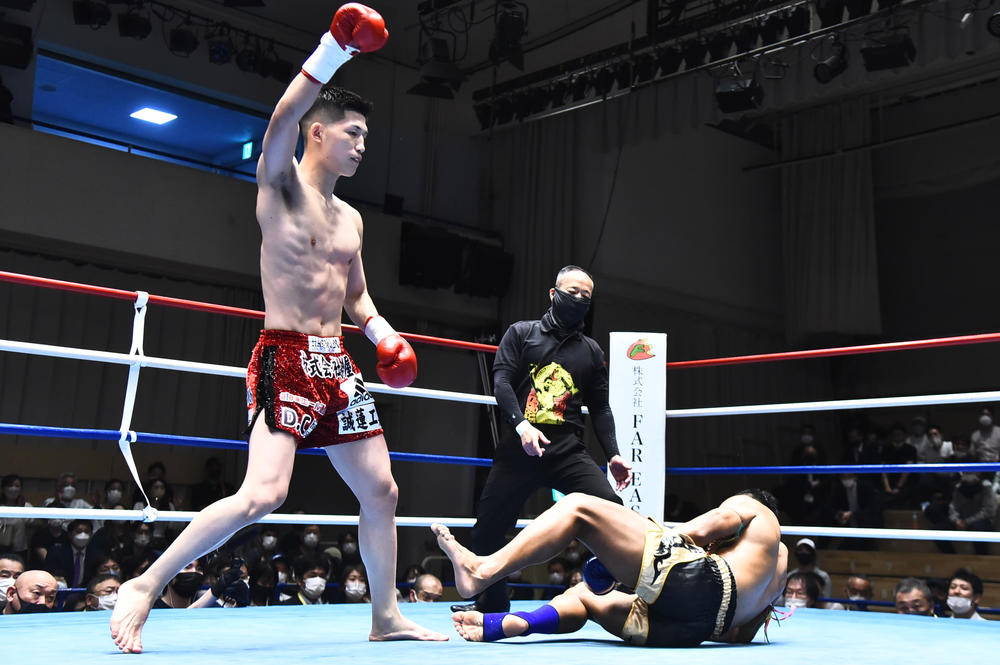 ▼第10試合 ダブルメインイベント2 58kg契約 3分3R延長1R○安本晴翔(橋本道場)KO 1R 1分06秒 ※3ノックダウン×ヨーパースー・ソンニンタイ(タイ)