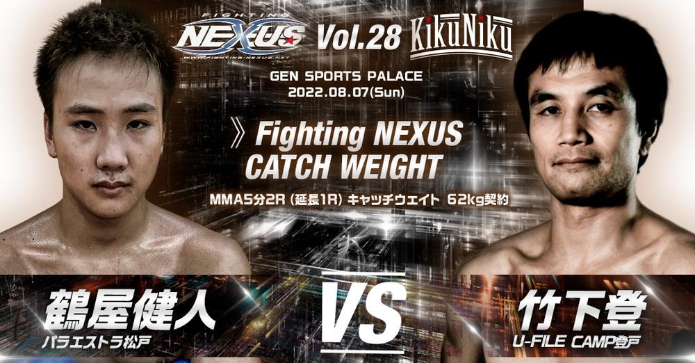 2022年8月7日(日)GENスポーツパレス4Fで開催される「KikuNiku presents Fighting NEXUS vol.28」の全対戦カードおよび試合順が発表された。