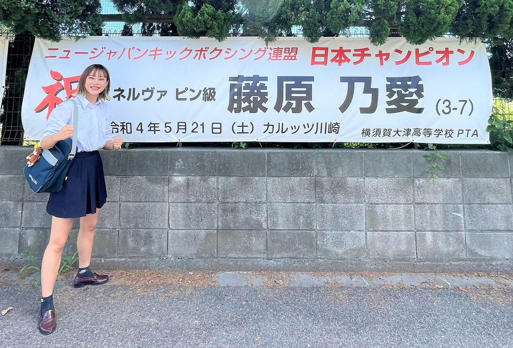 現役JKファイター・藤原乃愛、登校日に祝福の横断幕が飾られているのに感激「世界目指して頑張ります」