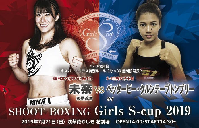 7月21日(日)東京・浅草花やしき園内で4月にオープンしたばかりの新ホール、浅草花劇場(かげきじょう)にて開催される“女子格闘技の真夏の祭典”『Girls S-cup 2019』の第一弾対戦カードが発表された。 出場が決定していたSB日本ライト級1位・未奈(秀晃道場)の対戦相手は、ペッターピー・クルンテープトンブリー(タイ)に決定。ペッターピーはムエタイのビッグマッチ『S-1』で活躍する22歳で、