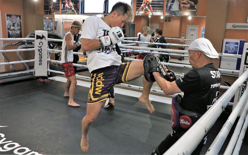 2019年7月21日(日)エディオンアリーナ大阪・第1競技場『Cygames presents RISE WORLD SERIES 2019 Semi Final Round in OSAKA』にて、世界トーナメント準決勝戦に臨むRISE&ISKA世界フェザー級王者・那須川天心(TARGET/Cygames)が、9日(火)千葉のTEPPEN GYMにて公開練習を行った。  3月に行われた1回戦では