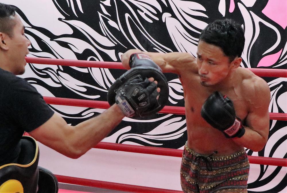 2019年7月21日(日)エディオンアリーナ大阪・第1競技場『Cygames presents RISE WORLD SERIES 2019 Semi Final Round in OSAKA』にて、-61kg世界トーナメント準決勝戦に臨む元ラジャダムナンスタジアム認定ライト級王者・梅野源治(PHOENIX)が、11日(木)都内所属ジムにて公開練習を行った。